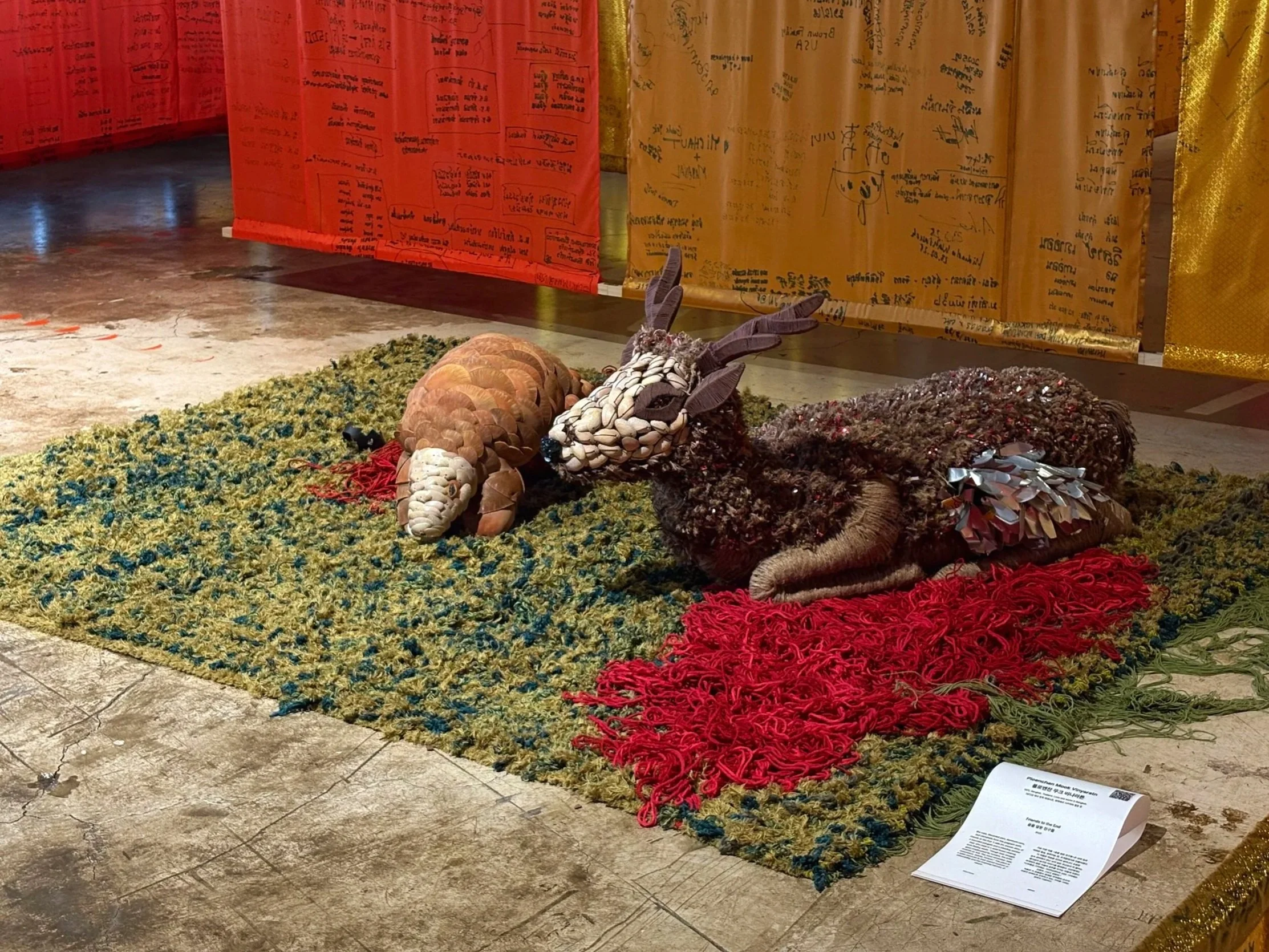 A pangolin and a sambar deer pause in their desperate flight, momentarily united by shared peril. The shrinking expanse of the threatened Cardamom Forest, encroached upon by human activity, serves as a stark metaphor for their diminishing sanctuary. The "area rug" becomes a potent symbol of displacement—a confined, bloodstained space where survival hangs precariously in the balance.